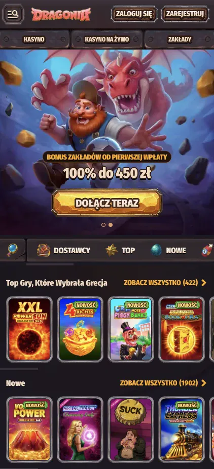 Nie ma też kompromisów w wyborze gier. W kasynie Dragonia widok mobilny daje dostęp do automatów, kasyna na żywo, gier stołowych, jackpotów i zakładów sportowych w jednym miejscu. Gdy grasz z Dragonia na telefonie, Twoje konto pozostaje spójne – saldo i historia sesji są przypisane do jednego profilu, a nie do osobnych kont mobilnych i desktopowych.
